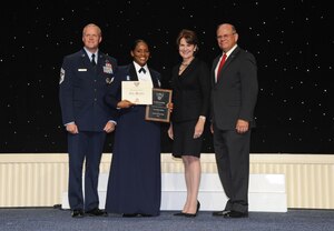 Chief Master Sgt. of the Air Force James A. Cody, left, poses with Staff Sgt. Kresston Davis, Marillyn Hewson, CEO of Lockheed Martin and Scott Van Cleef, Air Force Association Chairman of the Board. Hewson and Van Cleef had just presented Davis with her Outstanding Airman of the Year plaque and a
