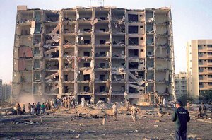 He saw the flash of light and felt the wind, but he didn't hear the blast. Still the truck bomb that destroyed the living quarters known as Khobar Towers and killed 19 Airmen on June 25, 1996, picked up Senior Airmen Lee Wright, threw him across the room and covered him in glass and metal debris.Now