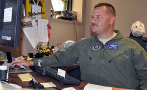 JOINT BASE PEARL HARBOR-HICKAM (July 23, 2012) - Lieutenant Colonel Randy Sauer and Major Jeff Milburn, both KC-135 Stratotanker pilots with the 465 Air Refueling Squadron, Tinker Air Force Base, Texas, perform pre-flight checklists during Rim of the Pacific exercise, July 23, 2012. Twenty-two