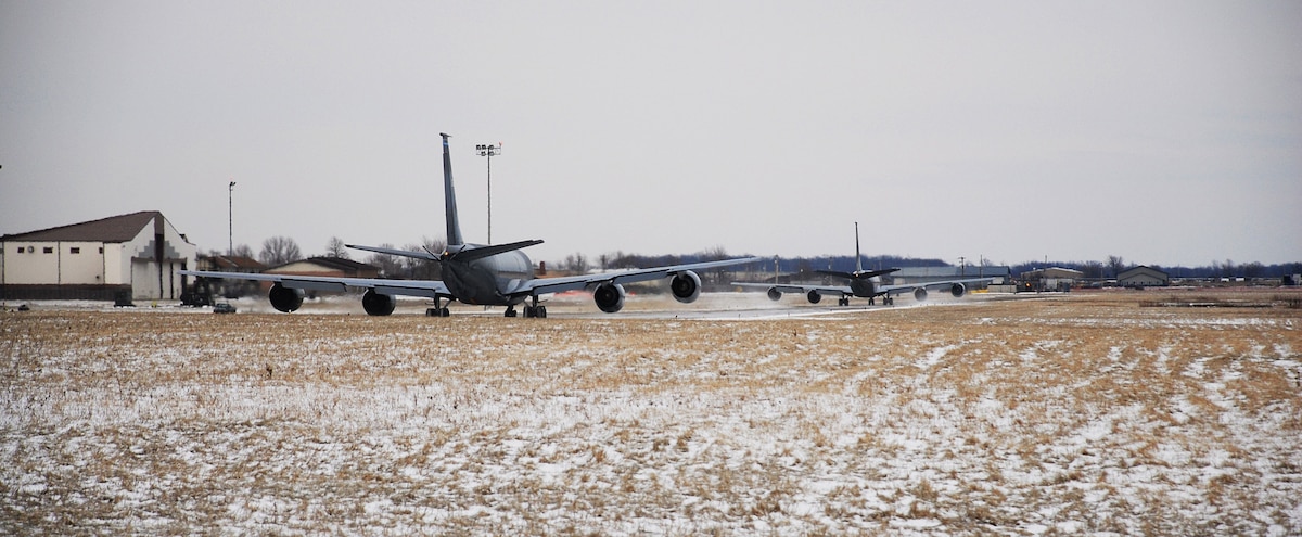 NIAGARA FALLS ARS, N.Y. -- A KC-135 aerial-refueling tanker departs from Niagara Falls Air Reserve Station for the last time Jan. 23. The New York Air National Guard's 107th will change its mission and its aircraft this spring. This is the first of the unit's aircraft to depart following reassignment. The 107th will work alongside the Air Force Reserve's 914th Airlift Wing as part of the Air Force Reserve's "Associate" concept. In an associate base units will share people, resources and processes to accomplish their flying missions. "Team Niagara" will feature the 914th as host to the 107th this year with both units flying reserve C-130H2s. (U.S. Air Force photo/Staff Sgt. Dan Lanphear)