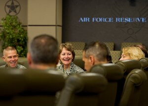 Lt. Gen. Maryanne Miller, commander of Air Force Reserve Command, and Lt. Gen. Steven L. Kwast, commander of Air Education and Training Command, conduct a staff-to-staff session here, Feb. 8, 2018. The staff-to-staff program allows AFRC and other U.S. Air Force major commands ensure consistent flow