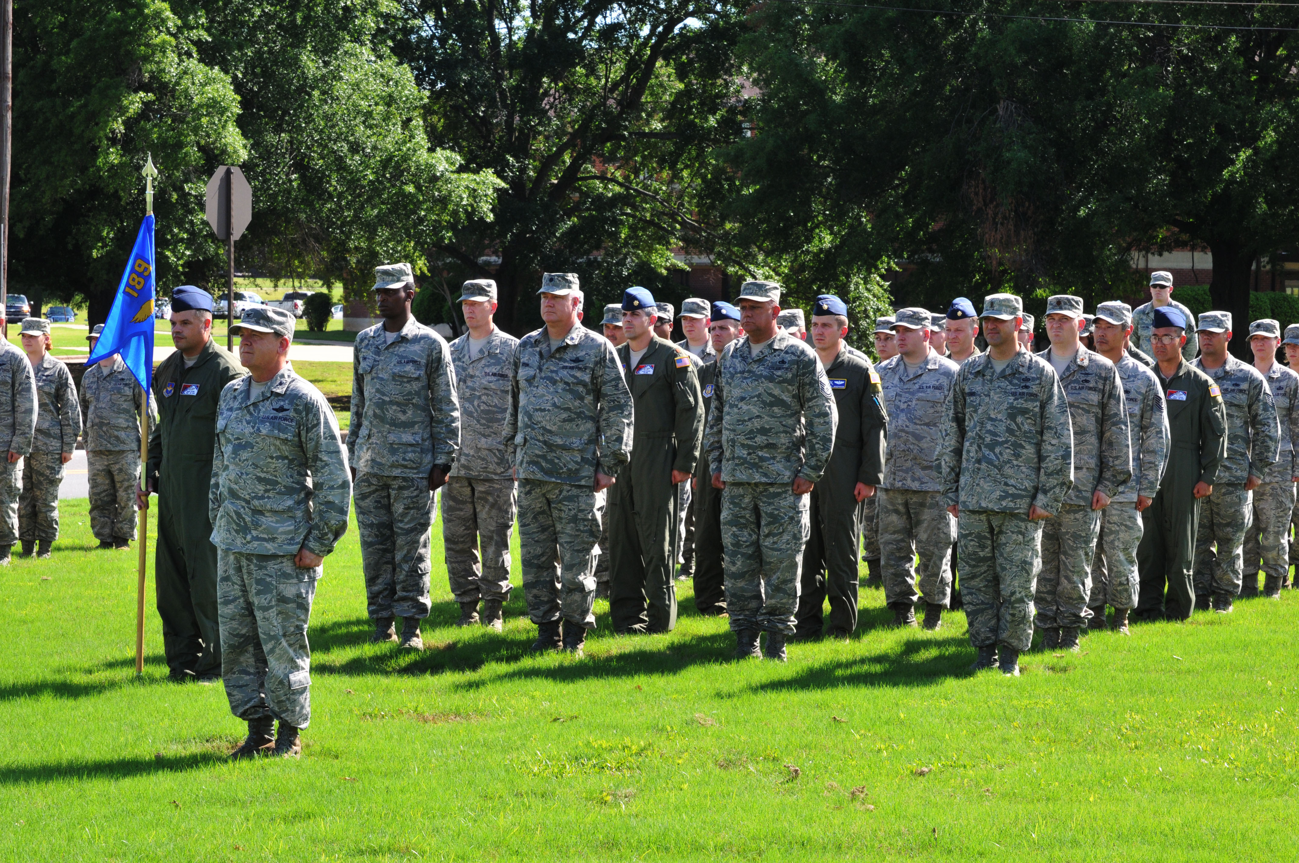 Col. Archie Frye, commander of 22nd Air Force, Detachment 1, leads the Guard and Reserve contingent during a special retreat ceremony May 22 at the Little Rock Air Force Base.