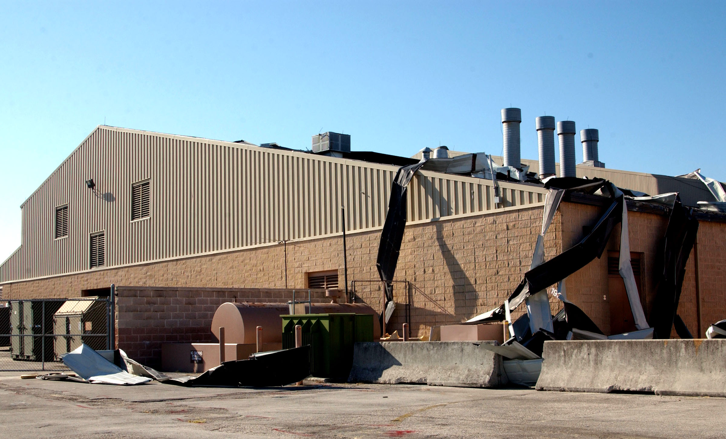 HOMESTEAD AIR RESERVE BASE, Fla. (AFPN) -- Four buildings sustained major roof damage and seven others sustained minor roof damage when Hurricane Wilma hit here. In addition, the Oct. 24 storm, knocked down trees and scattered debris over most of the base (U.S. Air Force photo by Lisa M. Macias)