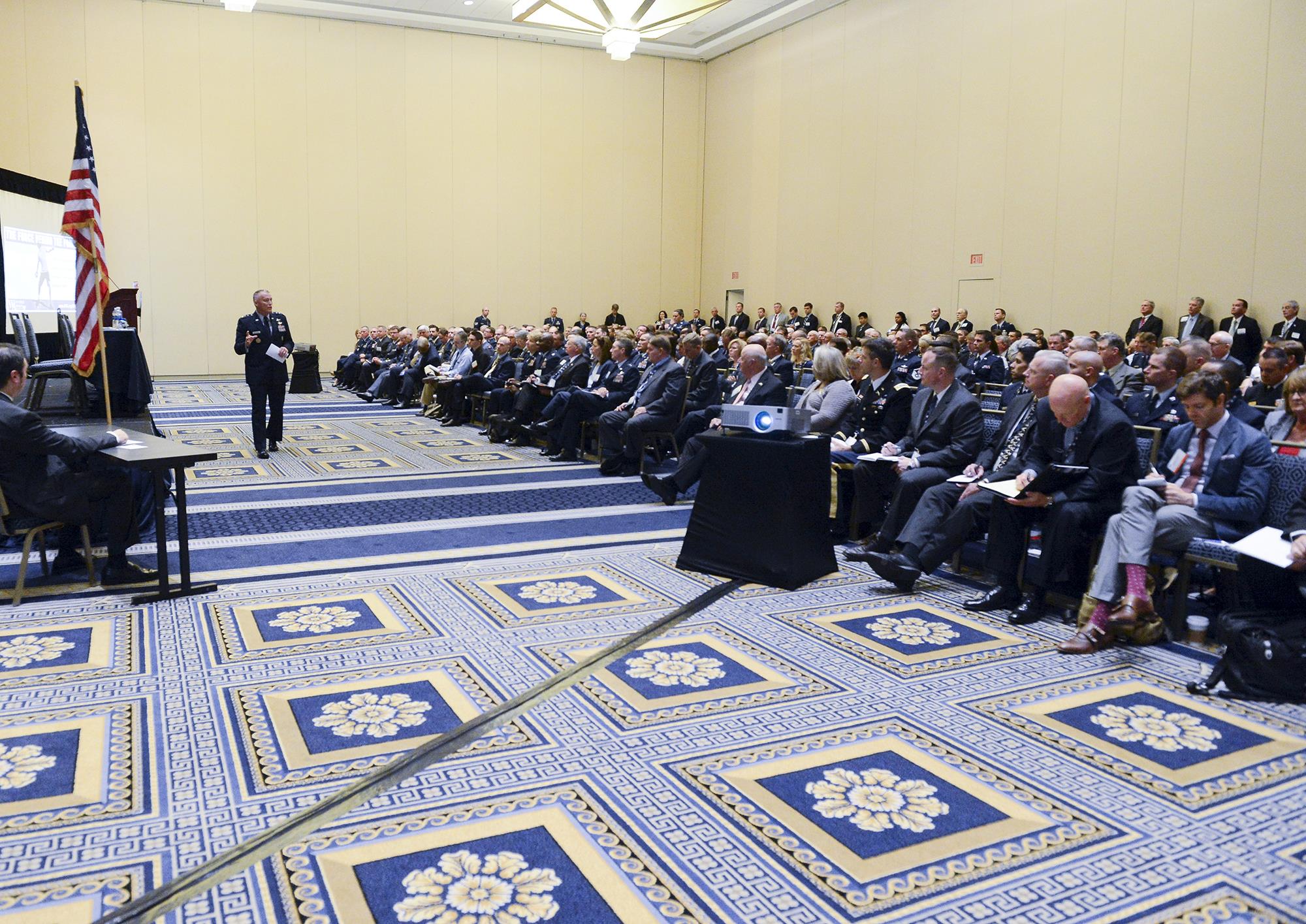 Lt. Gen. Kevin McLaughlin, the U.S. Cyber Command deputy commander, discusses cyber warfare during the Air Force Association's Air, Space and Cyber Conference in National Harbor, Md., Sept. 20, 2016. (U.S. Air Force photo/Scott M. Ash)