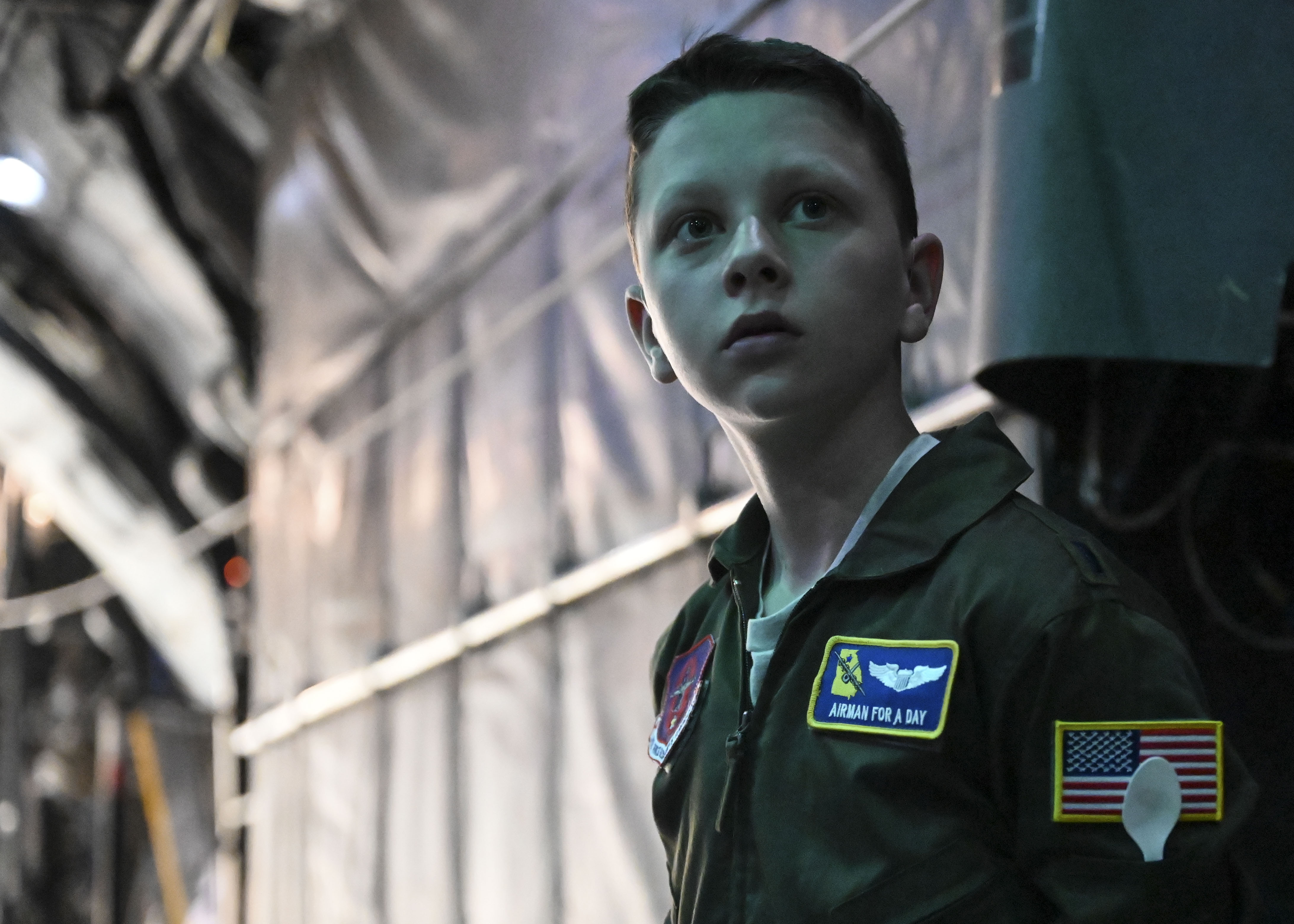 Nolan Madsen, 12, visits the 700th Airlift squadron at Dobbins Air Reserve Base, Ga., Feb. 6, 2023. Madsen was on the installation as part of the Airman for a Day program, which allows youth from the local community to experience life as an Airman for the day, while visiting various units and learning about their capabilities. (U.S. Air Force photo by Ciara Gosier)