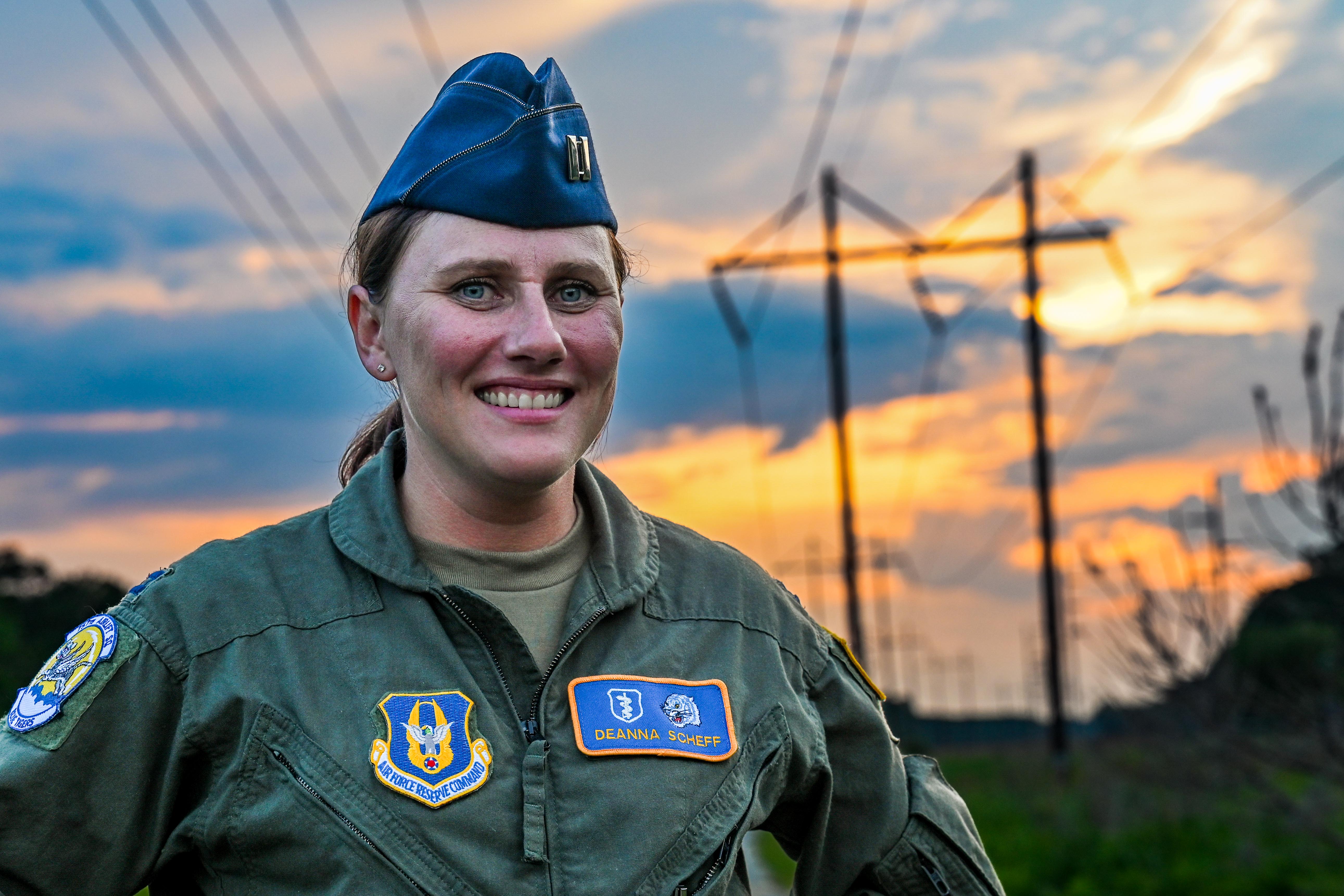 Capt. Deanna Scheff, a medical entomologist with the 757th Airlift Squadron, poses for a photo on May 16, 2023, at Joint Base Charleston, South Carolina. Based at Youngstown Air Reserve Station, Ohio, the Reserve Citizen Airmen of the 757th AS maintain the Department of Defense’s only large area, fixed-wing aerial spray capability to control disease-carrying insects and pest insects. (U.S. Air Force photo by Tech. Sgt. Noah J. Tancer)