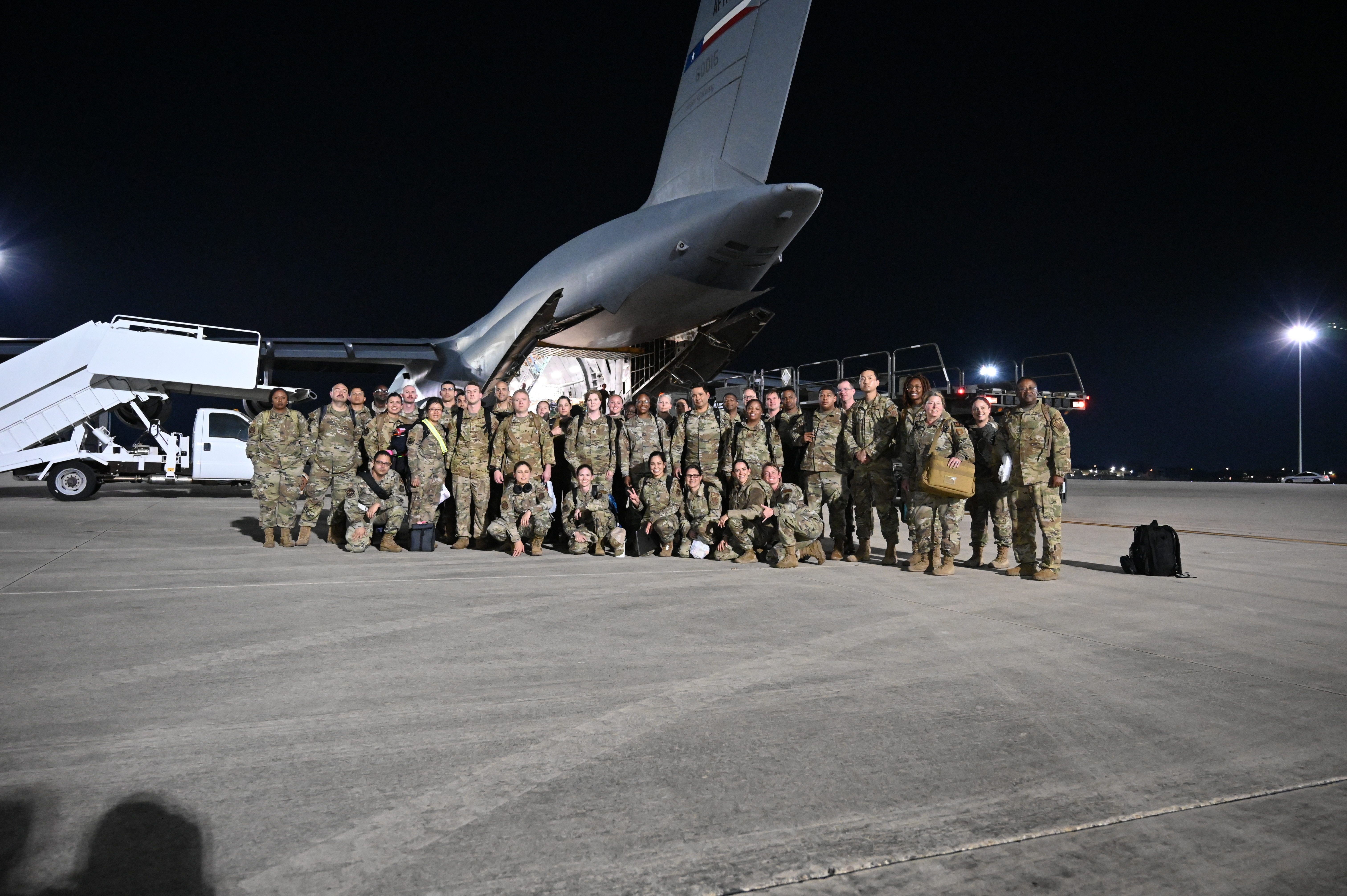 433rd Medical Squadron Airmen who participated in Patriot Medic 23 pose for a unit photo following their return to JBSA-Lackland on Aug. 29, 2023. Participation in the 19-day exercise, involving more 7,100 reserve and active-duty service members from multiple branches, allowed Airmen of the 433rd Medical Group to validate their readiness to deploy. (U.S. Air Force Photo by Julian Hernandez)